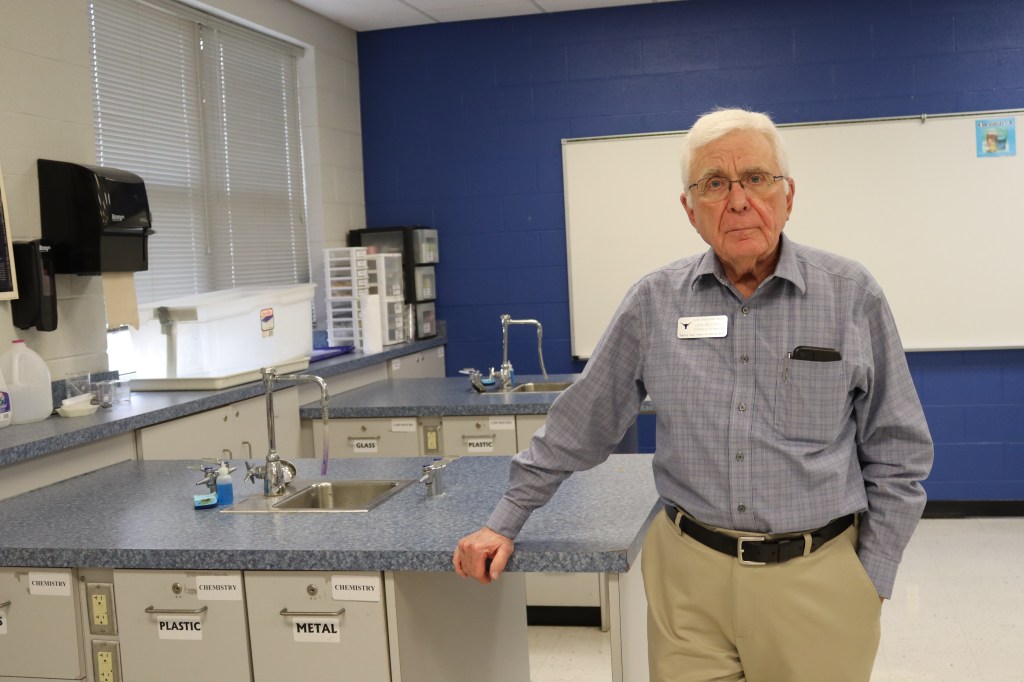 Mr. Whitfill’s classes are in two different classrooms in Lone Grove High School separated by a short hallway. Both are filled with equipment and technology. Some might assume using new technology at his age would give him pause, but he thinks it is great. He loves using his smart board to enhance his teaching. His chemistry room has space for both lectures and lab work. And the fully-stocked computer lab feels like home after years of working for Dell.